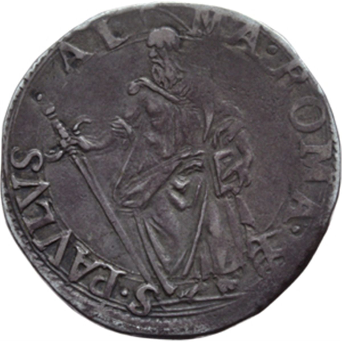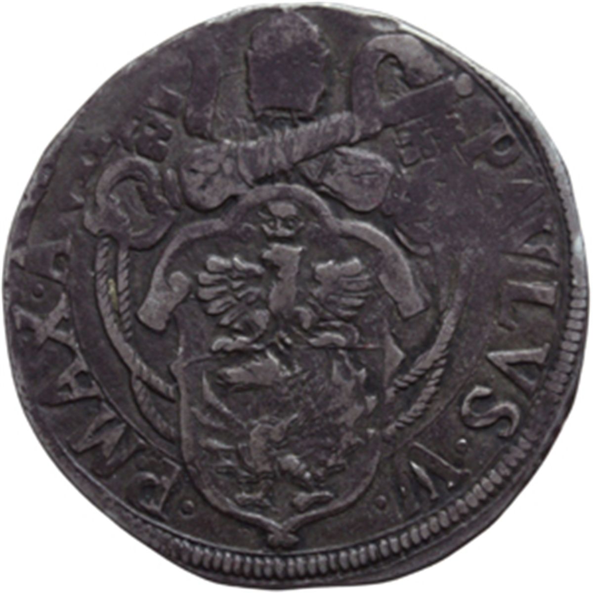 Monete e Medaglie di Zecche Italiane. Roma. Paolo V (1605-1621). Testone A. VII. M. 33. Berm. 1553. AG. g. 9.50 R. qBB.