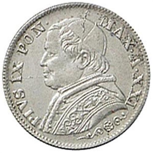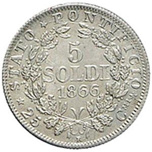Monete e Medaglie di Zecche Italiane. Roma. Pio IX (1846-1870). 5 soldi 1867 A.XXI. Pag.587. AG. FDC. Conservazione eccezionale.