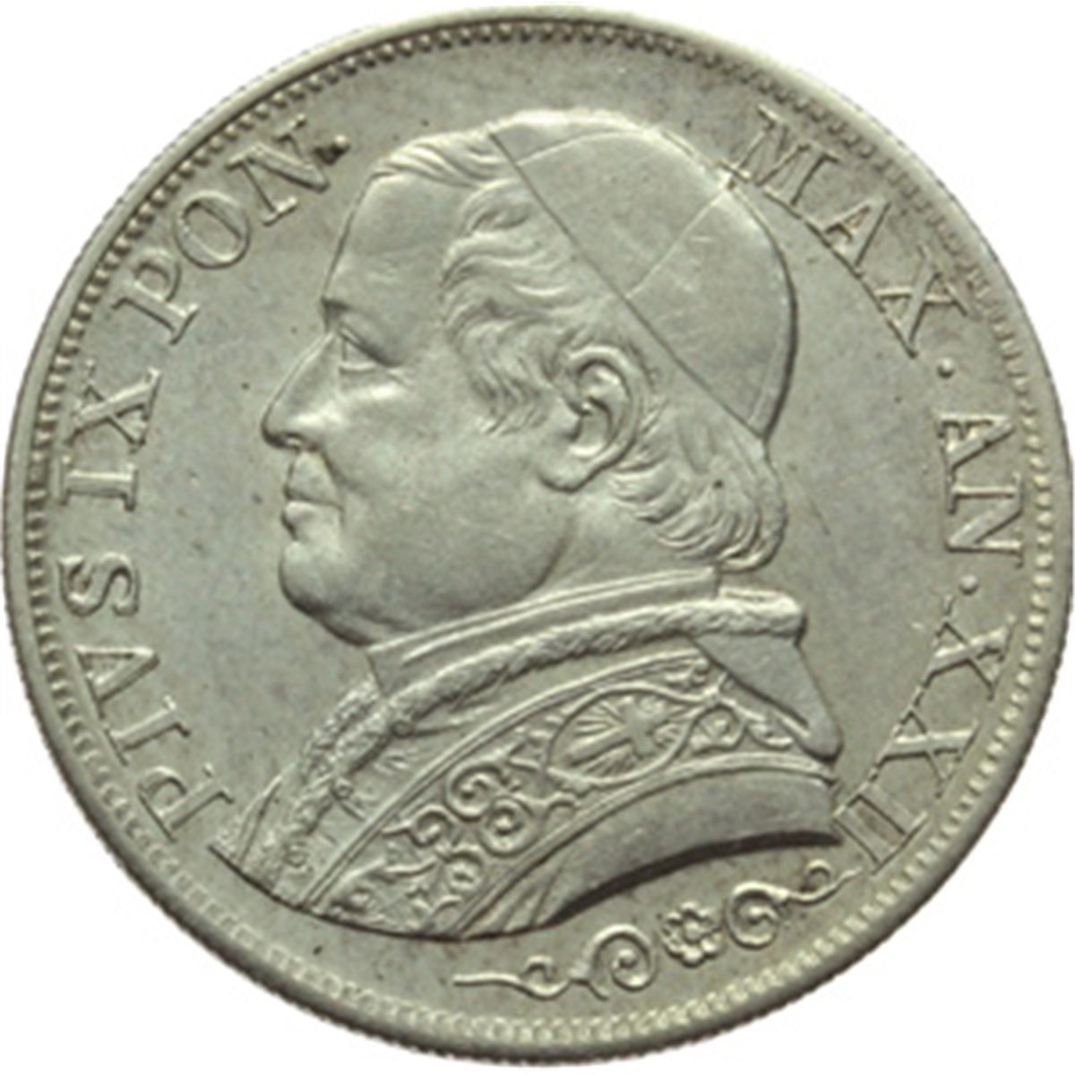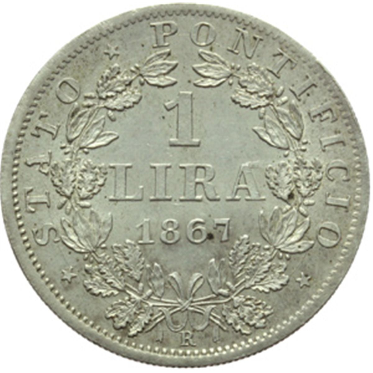 Monete e Medaglie di Zecche Italiane. Roma. Pio IX (1846-1870). Lira 1867, A. XXII. Pag. 570. Mont. 380. AG. FDC.