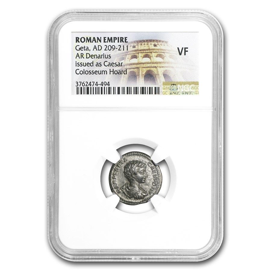 Roman AR Denarius Emperor Geta (209-211 AD) VF NGC