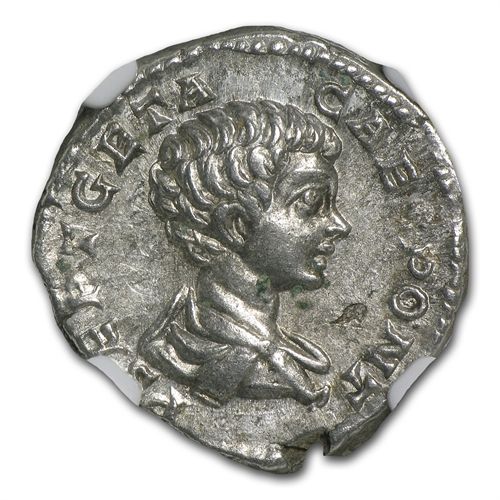 Roman AR Denarius Emperor Geta (209-211AD) NGC ChAU **|**|** Roman AR Denarius Emperor Geta (209-211AD) NGC ChAU ; MSRP: $400