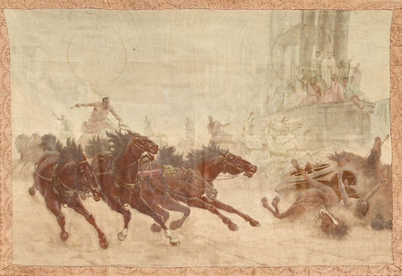 Roman Chariot Race, Gouache Painting on Cloth