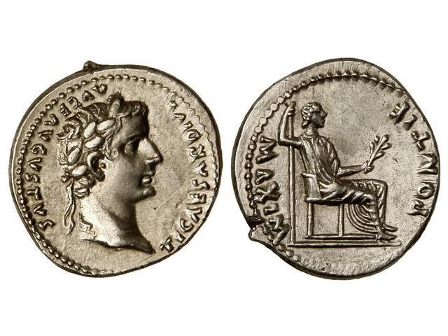 Roman Coins: Roman Empire - Denario. 14-37 d.C. TIBERIO. Anv.: TI. CAESAR DIVI AVG. F. AVGVSTVS. Busto laureado a derecha. Rev.: PONTIF.MAXIM. Livia sentada a derecha. (Pequeña rayita en anverso). MAGNÍFICO EJEMPLAR. C-16. EBC+/EBC.