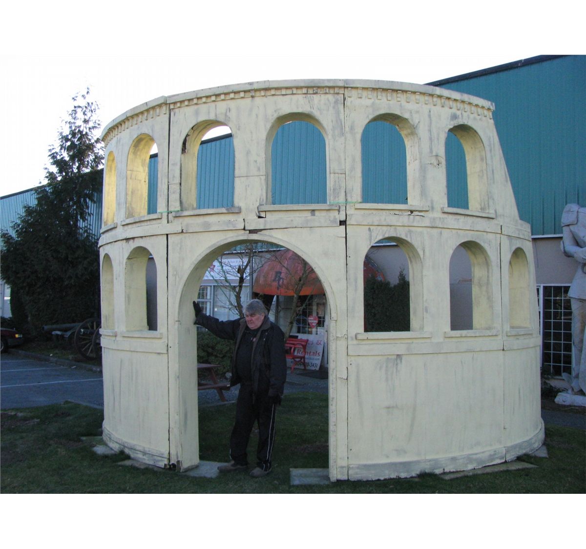 19 foot 6 inches wide by 10 feet deep by 12 1/2 high. Used in many shows