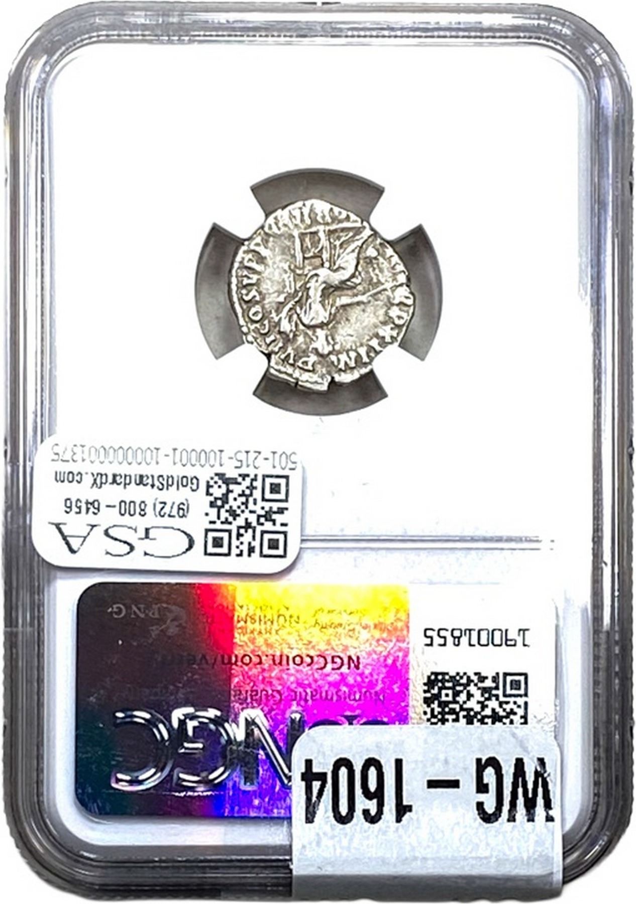 e. Coins sold referencing a third-party grading service are sold “AS IS” without any express or implied warranty, except for a guarantee by GSA that they are genuine. Removal or alteration of the holder, voids all of Bidder’s claims concerning that Product. Certain warranties may be available from the grading services and Bidders are referred to them for further details: Numismatic Guaranty Corporation (NGC), PO Box 4776, Sarasota, FL 34230, www.ngccoin.com/services/writtenguarantee.asp; Professional Coin Grading Services (PCGS), PO Box 9458, Newport Beach, CA 92658, www.pcgs.com/guarantee.html; ANACS, 6555 S. Kenton St., Ste. 303, Englewood, CO 80111; and Independent Coin Grading Co. (ICG), 7901 East Bellview, Ave., Suite 50, Englewood, CO 80111.