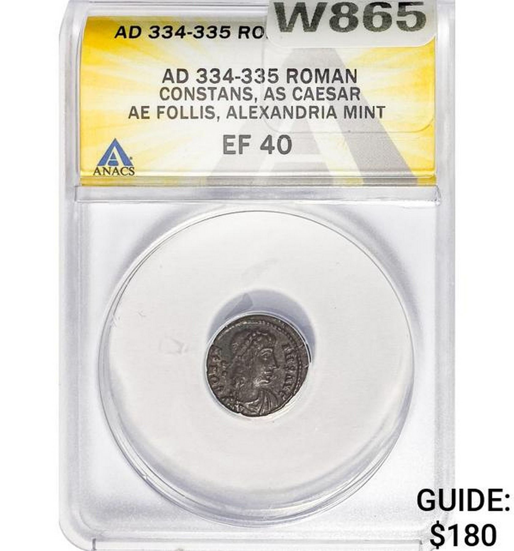 Roman Constans, AD 334-335 Bronze Follis ANACS EF40