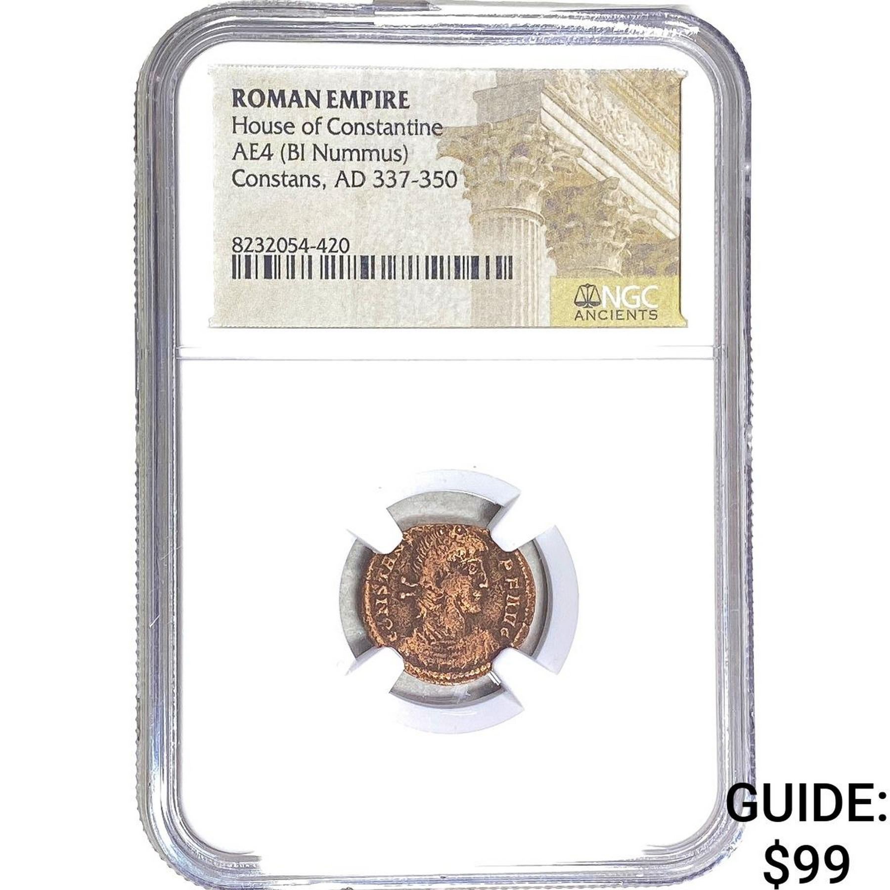 Roman Constantine 337-350 AD AE4 Bi Nummus NGC