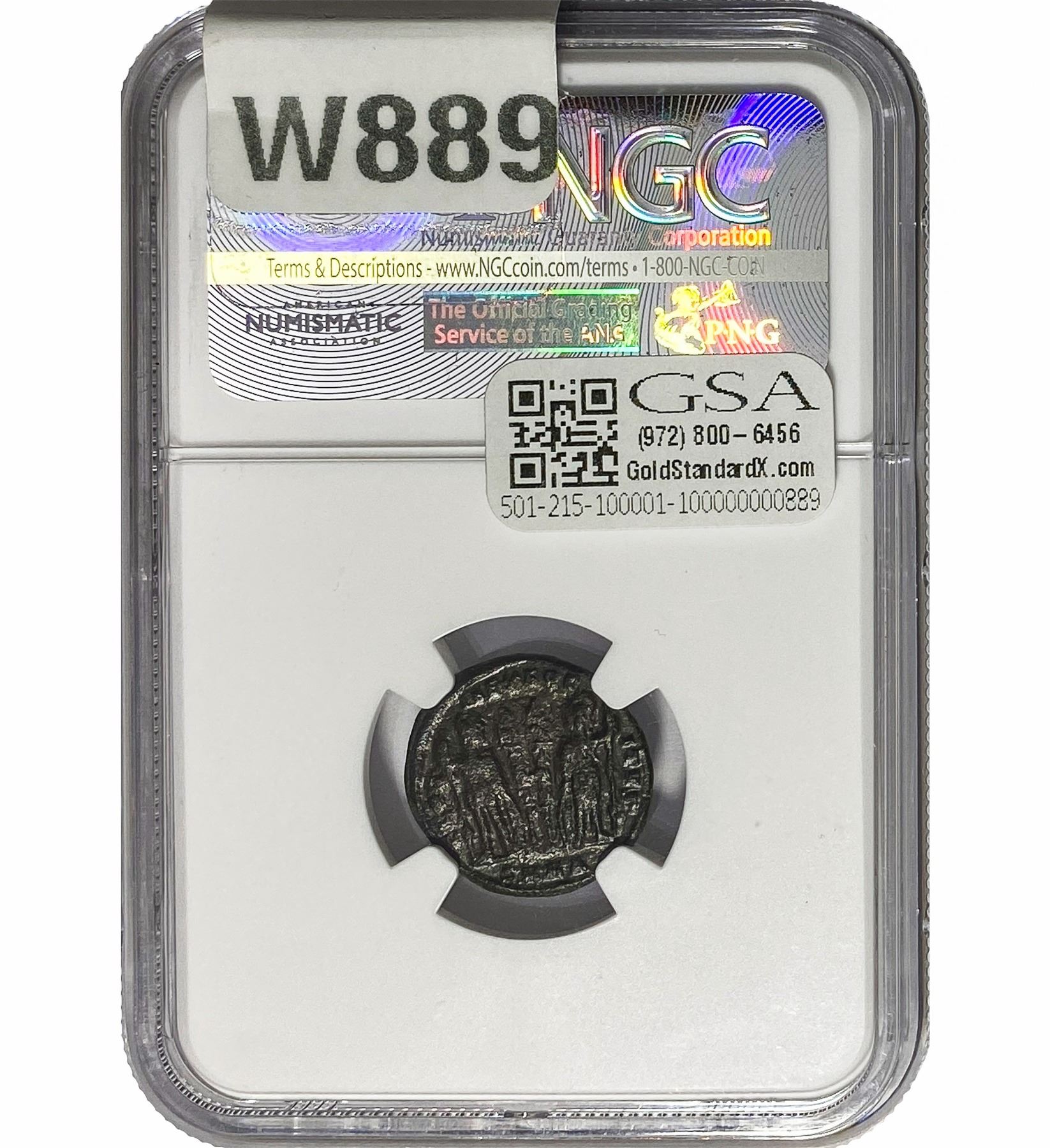 e. Coins sold referencing a third-party grading service are sold “AS IS” without any express or implied warranty, except for a guarantee by GSA that they are genuine. Removal or alteration of the holder, voids all of Bidder’s claims concerning that Product. Certain warranties may be available from the grading services and Bidders are referred to them for further details: Numismatic Guaranty Corporation (NGC), PO Box 4776, Sarasota, FL 34230, www.ngccoin.com/services/writtenguarantee.asp; Professional Coin Grading Services (PCGS), PO Box 9458, Newport Beach, CA 92658, www.pcgs.com/guarantee.html; ANACS, 6555 S. Kenton St., Ste. 303, Englewood, CO 80111; and Independent Coin Grading Co. (ICG), 7901 East Bellview, Ave., Suite 50, Englewood, CO 80111.