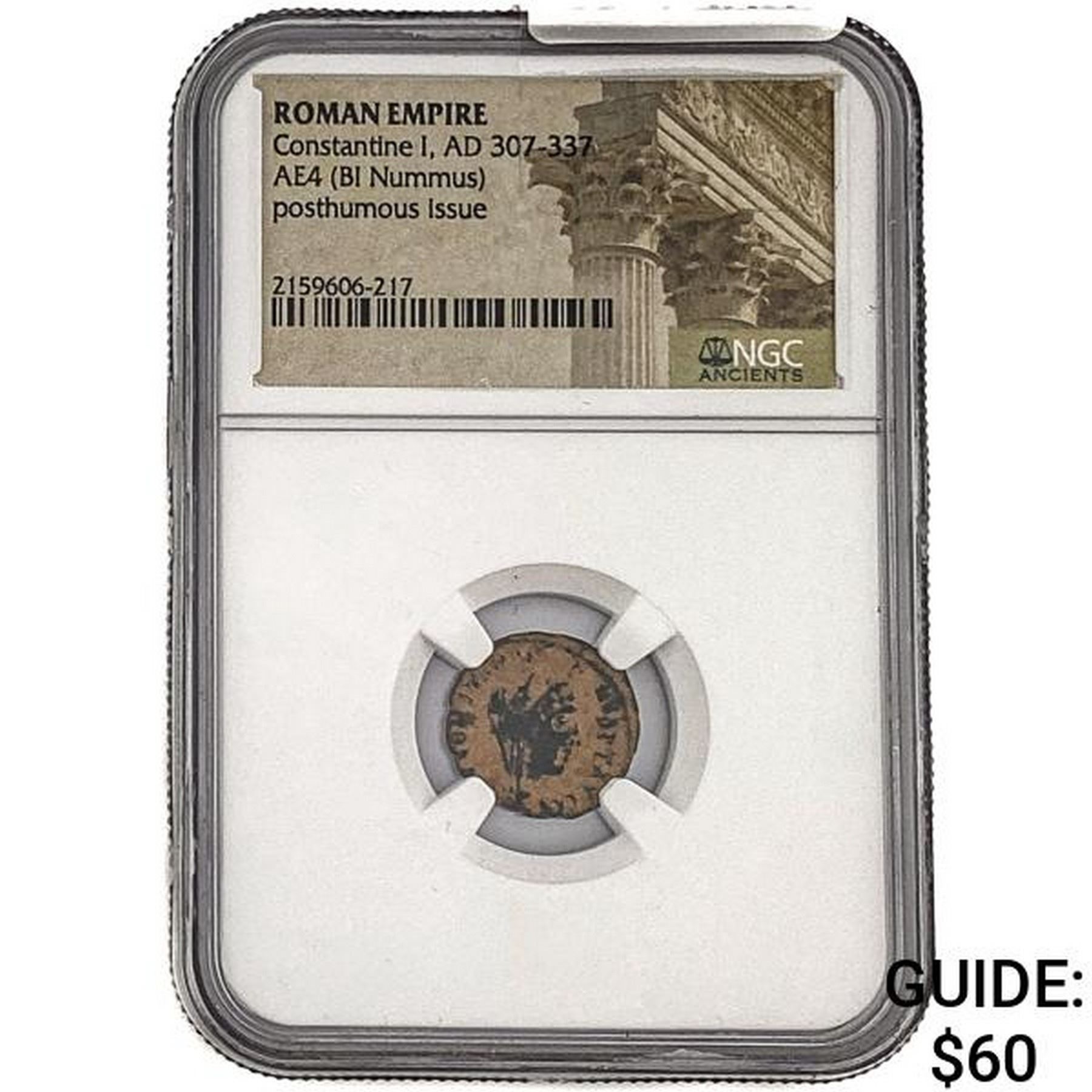Roman Constantine I, AD 307-337 AE4 BI Nummus NGC