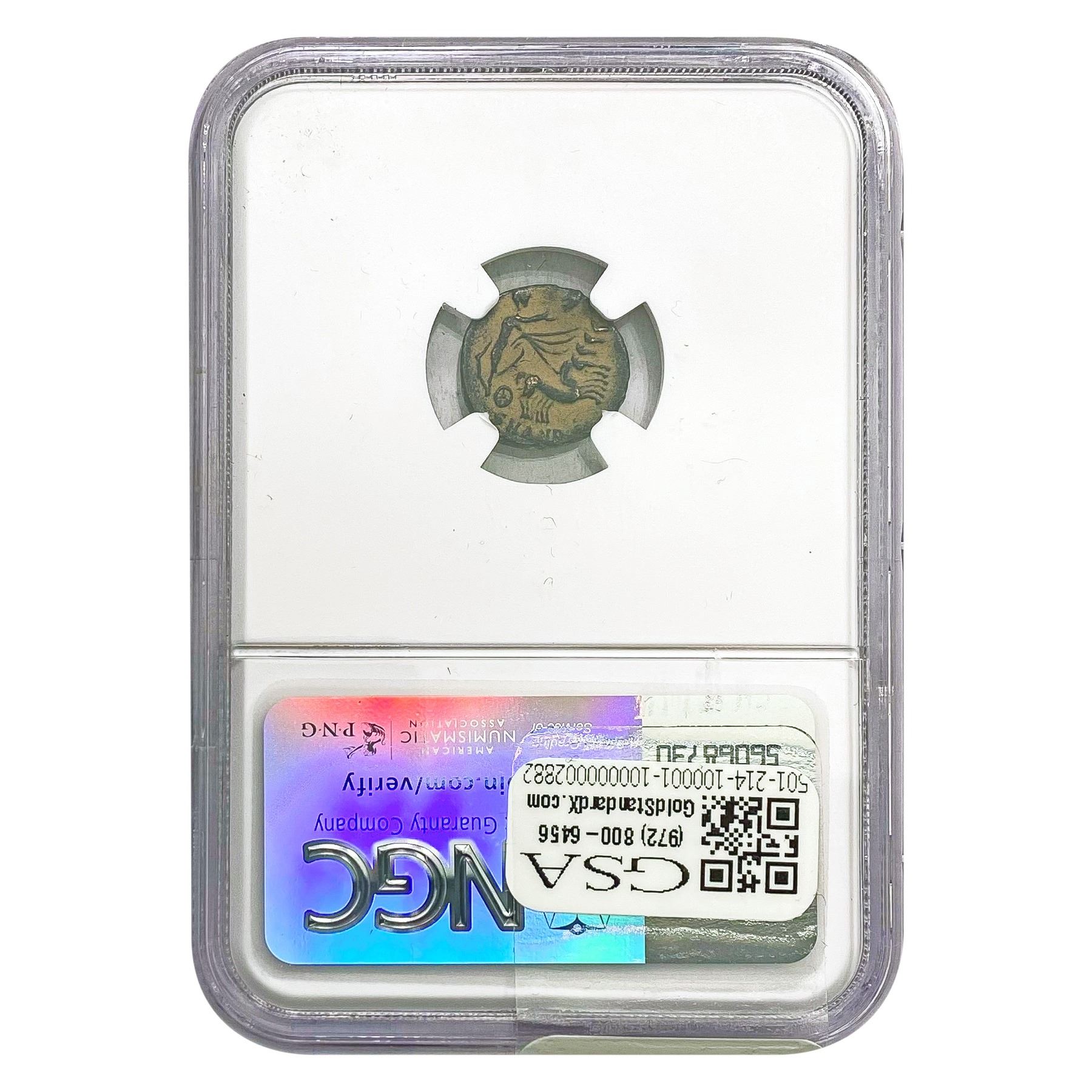 e. Coins sold referencing a third-party grading service are sold “AS IS” without any express or implied warranty, except for a guarantee by GSA that they are genuine. Removal or alteration of the holder, voids all of Bidder’s claims concerning that Product. Certain warranties may be available from the grading services and Bidders are referred to them for further details: Numismatic Guaranty Corporation (NGC), PO Box 4776, Sarasota, FL 34230, www.ngccoin.com/services/writtenguarantee.asp; Professional Coin Grading Services (PCGS), PO Box 9458, Newport Beach, CA 92658, www.pcgs.com/guarantee.html; ANACS, 6555 S. Kenton St., Ste. 303, Englewood, CO 80111; and Independent Coin Grading Co. (ICG), 7901 East Bellview, Ave., Suite 50, Englewood, CO 80111.
