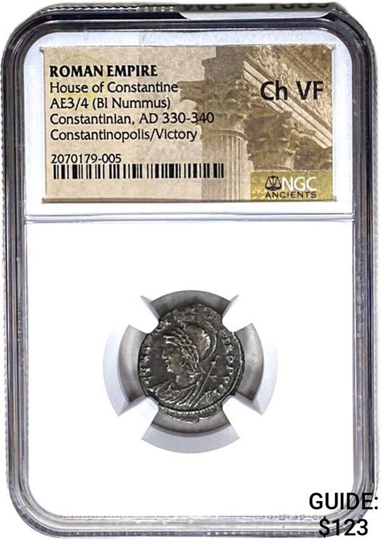 Roman Constantinian, AD 330-340 AE3/4 BI Nummus NGC Ch F