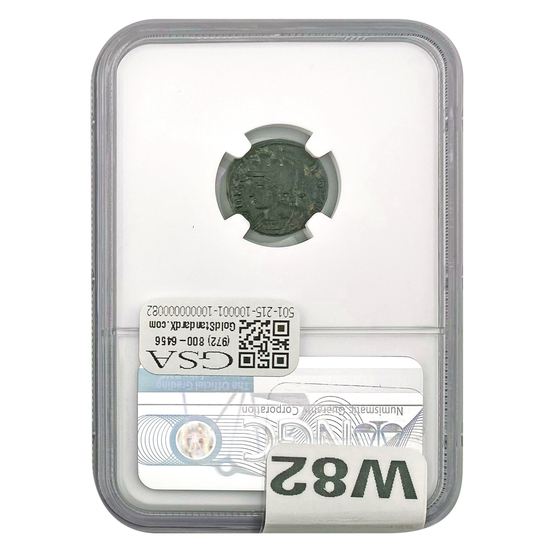 COINS AND CURRENCY LISTED IN GSA’S CATALOG AS GRADED AND ENCAPSULATED BY PCGS, NGC, ANACS, ICG, PCGS CURRENCY, PMG, PCGS BANKNOTE GRADING, CMC OR ANY OTHER THIRD-PARTY GRADING SERVICE ARE LIKEWISE SOLD “AS-IS” EXCEPT AS EXPRESSLY SET FORTH HEREIN. ALL THIRD-PARTY GRADING SERVICE GUARANTEES, INCLUDING AUTHENTICITY, ARE THE SOLE RESPONSIBILITY OF THE THIRD-PARTY GRADING SERVICE AND NOT WARRANTIES OR GUARANTEES OF GSA. BIDDERS SHOULD CONTACT THESE THIRD-PARTY GRADING SERVICES DIRECTLY WITH RESPECT TO ANY CLAIMS OR QUESTIONS THEY MAY HAVE CONCERNING THEIR GUARANTEES AND WARRANTIES. BIDDERS ACKNOWLEDGE AND AGREE THAT AUCTIONEER IS NOT BOUND BY OR LIABLE FOR ANY OPINION OR CERTIFICATION BY ANY THIRD-PARTY GRADING SERVICE. REMOVAL OF A PRODUCT FROM ITS PROTECTIVE CASING OR HOLDER OR ALTERATION OF ANY COIN HOLDER WAIVES ALL RIGHTS CONCERNING THE PRODUCT CONTAINED THEREIN.