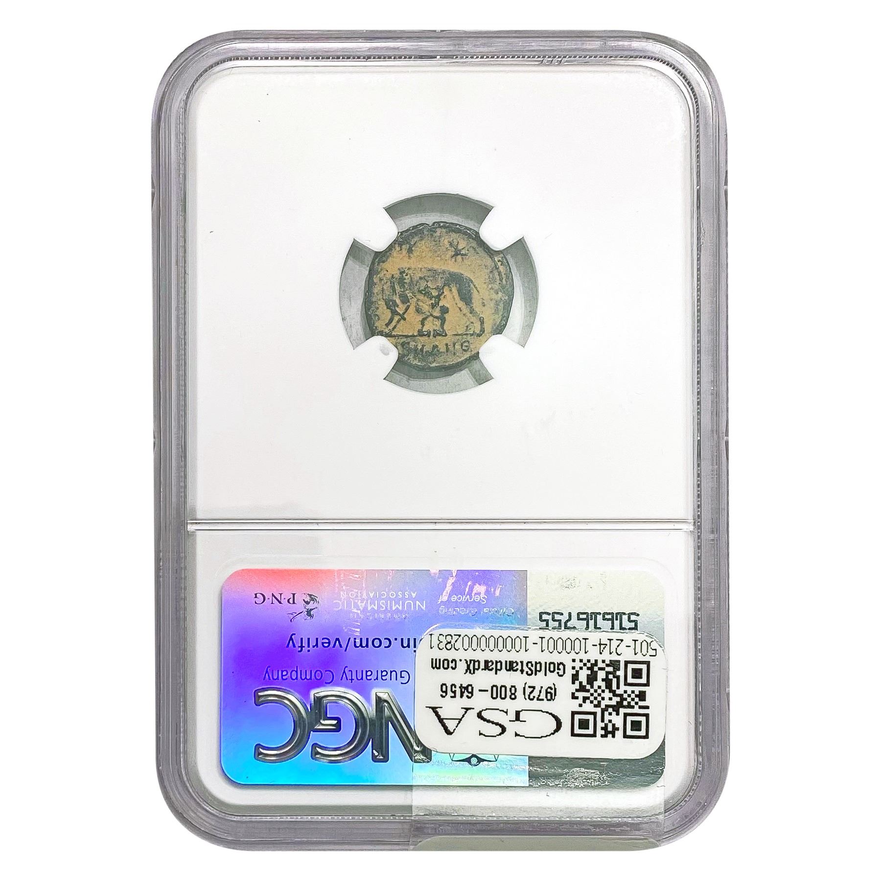 e. Coins sold referencing a third-party grading service are sold “AS IS” without any express or implied warranty, except for a guarantee by GSA that they are genuine. Removal or alteration of the holder, voids all of Bidder’s claims concerning that Product. Certain warranties may be available from the grading services and Bidders are referred to them for further details: Numismatic Guaranty Corporation (NGC), PO Box 4776, Sarasota, FL 34230, www.ngccoin.com/services/writtenguarantee.asp; Professional Coin Grading Services (PCGS), PO Box 9458, Newport Beach, CA 92658, www.pcgs.com/guarantee.html; ANACS, 6555 S. Kenton St., Ste. 303, Englewood, CO 80111; and Independent Coin Grading Co. (ICG), 7901 East Bellview, Ave., Suite 50, Englewood, CO 80111.