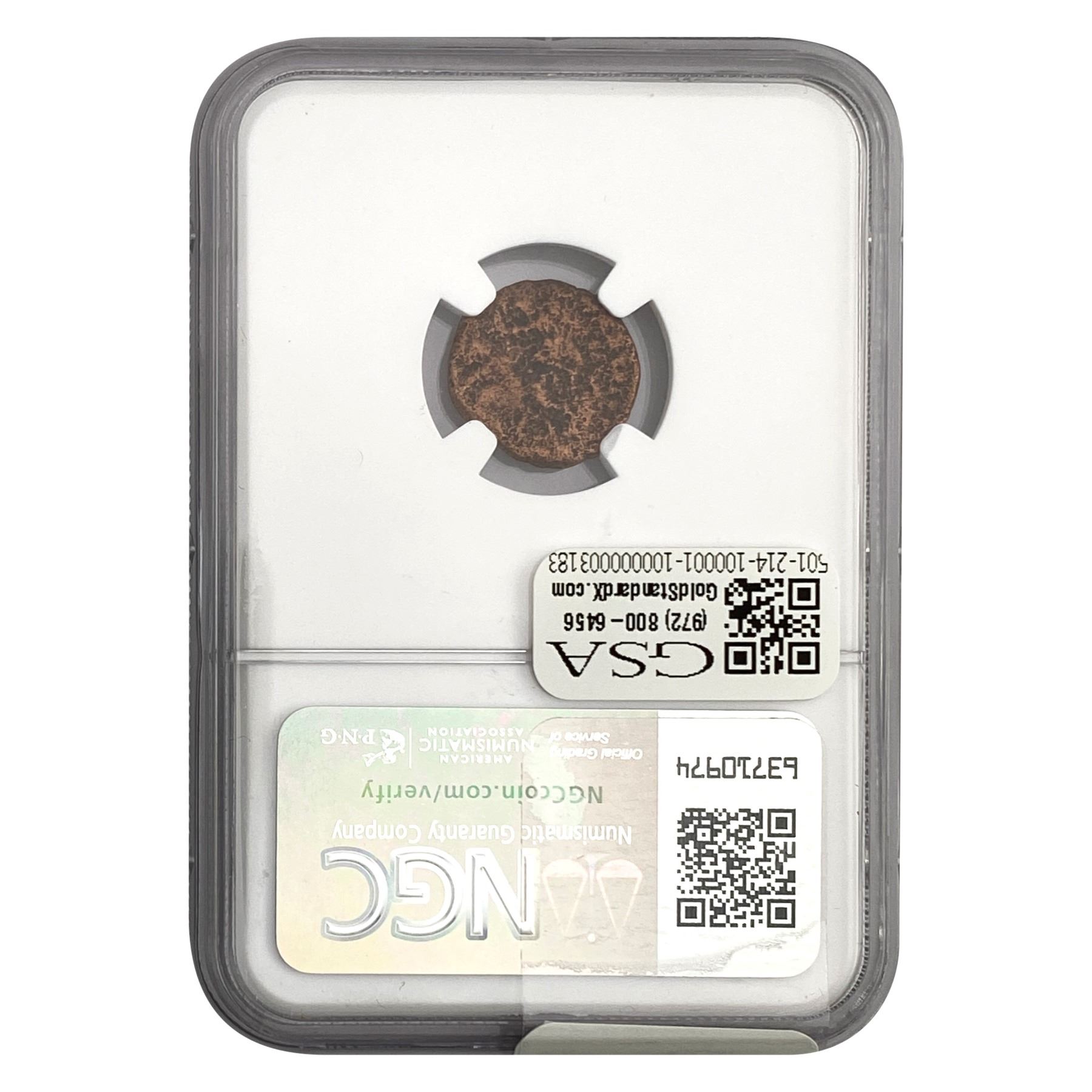 e. Coins sold referencing a third-party grading service are sold “AS IS” without any express or implied warranty, except for a guarantee by GSA that they are genuine. Removal or alteration of the holder, voids all of Bidder’s claims concerning that Product. Certain warranties may be available from the grading services and Bidders are referred to them for further details: Numismatic Guaranty Corporation (NGC), PO Box 4776, Sarasota, FL 34230, www.ngccoin.com/services/writtenguarantee.asp; Professional Coin Grading Services (PCGS), PO Box 9458, Newport Beach, CA 92658, www.pcgs.com/guarantee.html; ANACS, 6555 S. Kenton St., Ste. 303, Englewood, CO 80111; and Independent Coin Grading Co. (ICG), 7901 East Bellview, Ave., Suite 50, Englewood, CO 80111.