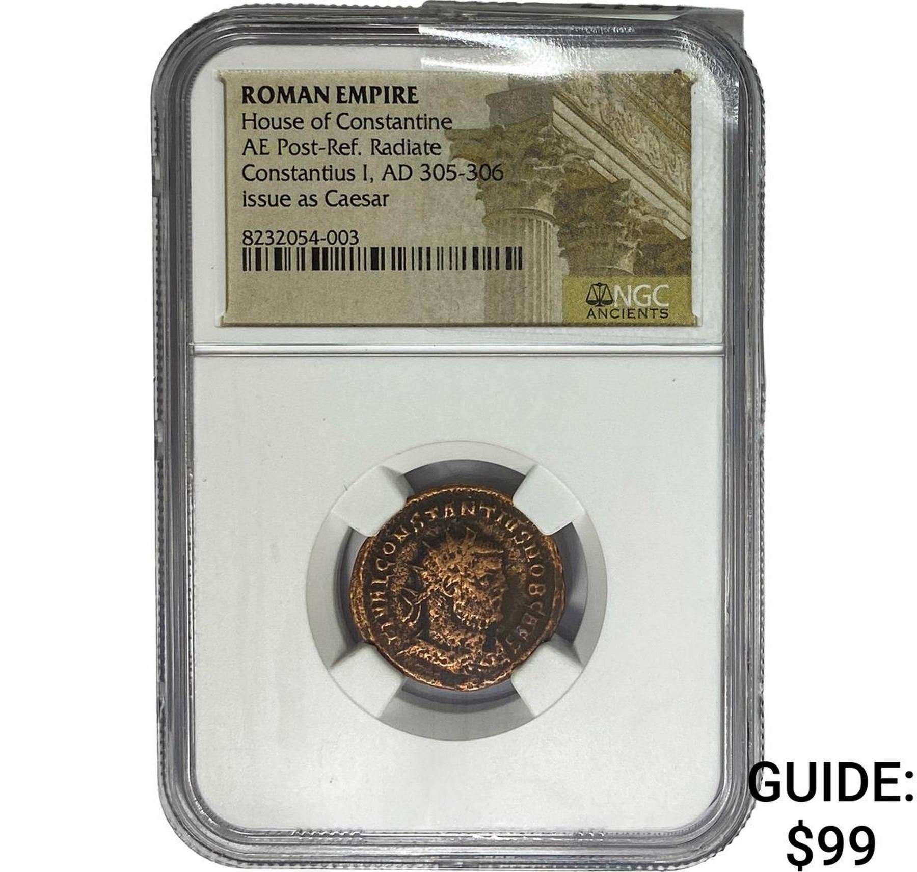 Roman Constantius I AD305-306 Bronze Post-Ref. Rad NGC