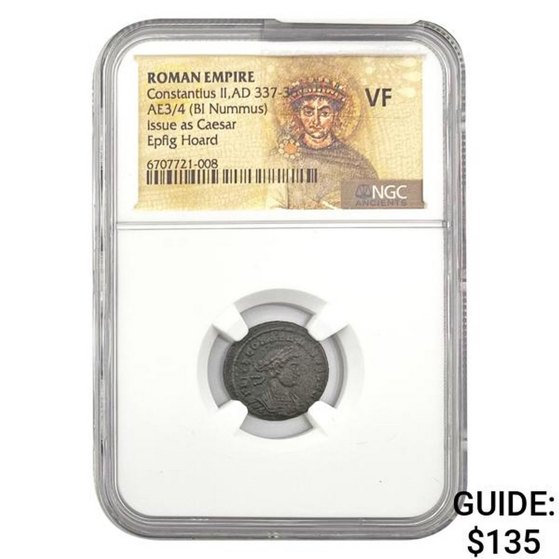 Roman Constantius II, AD 337-361 AE3/4 BI Nummus NGC