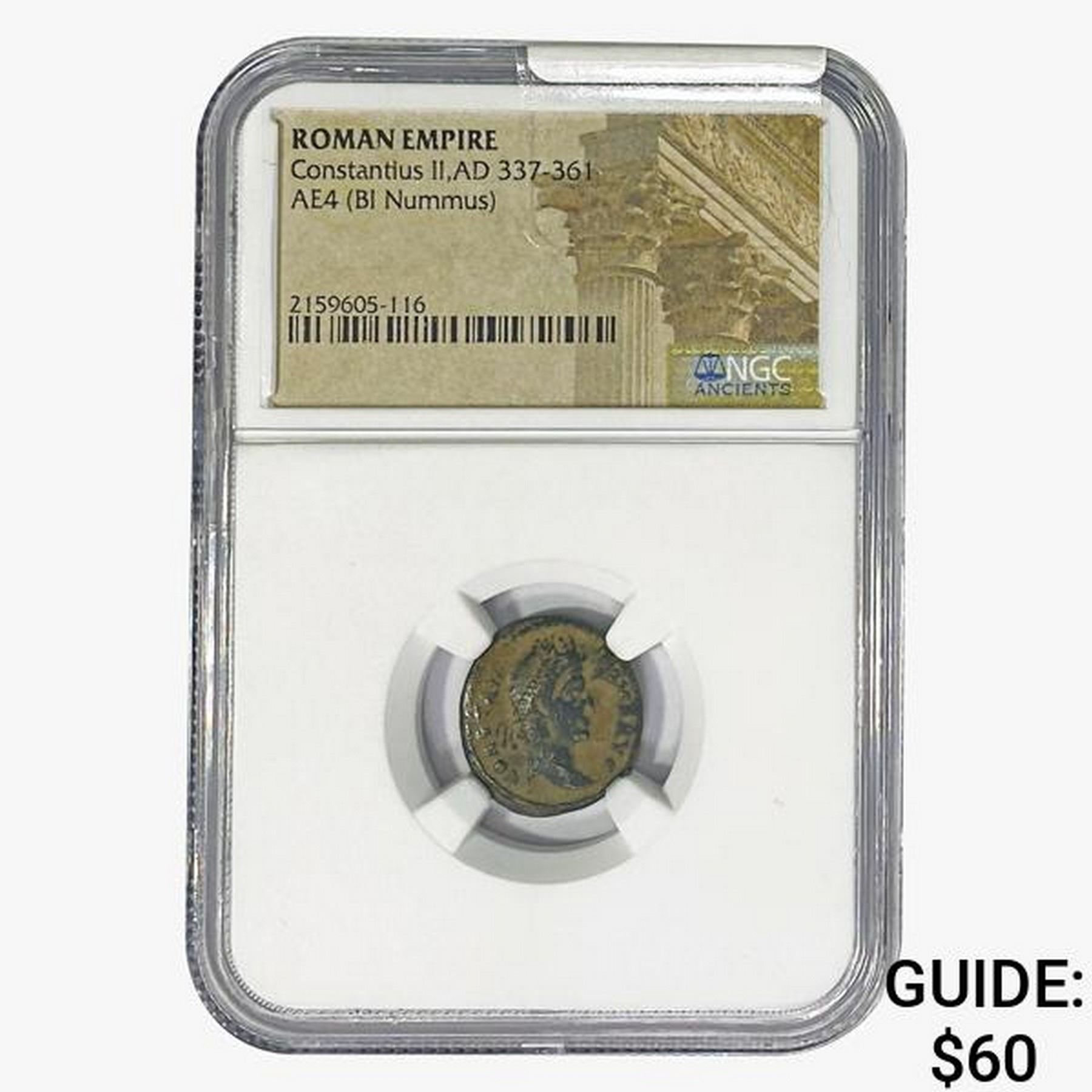 Roman Constantius II, AD 337-361 AE4 BI Nummus NGC