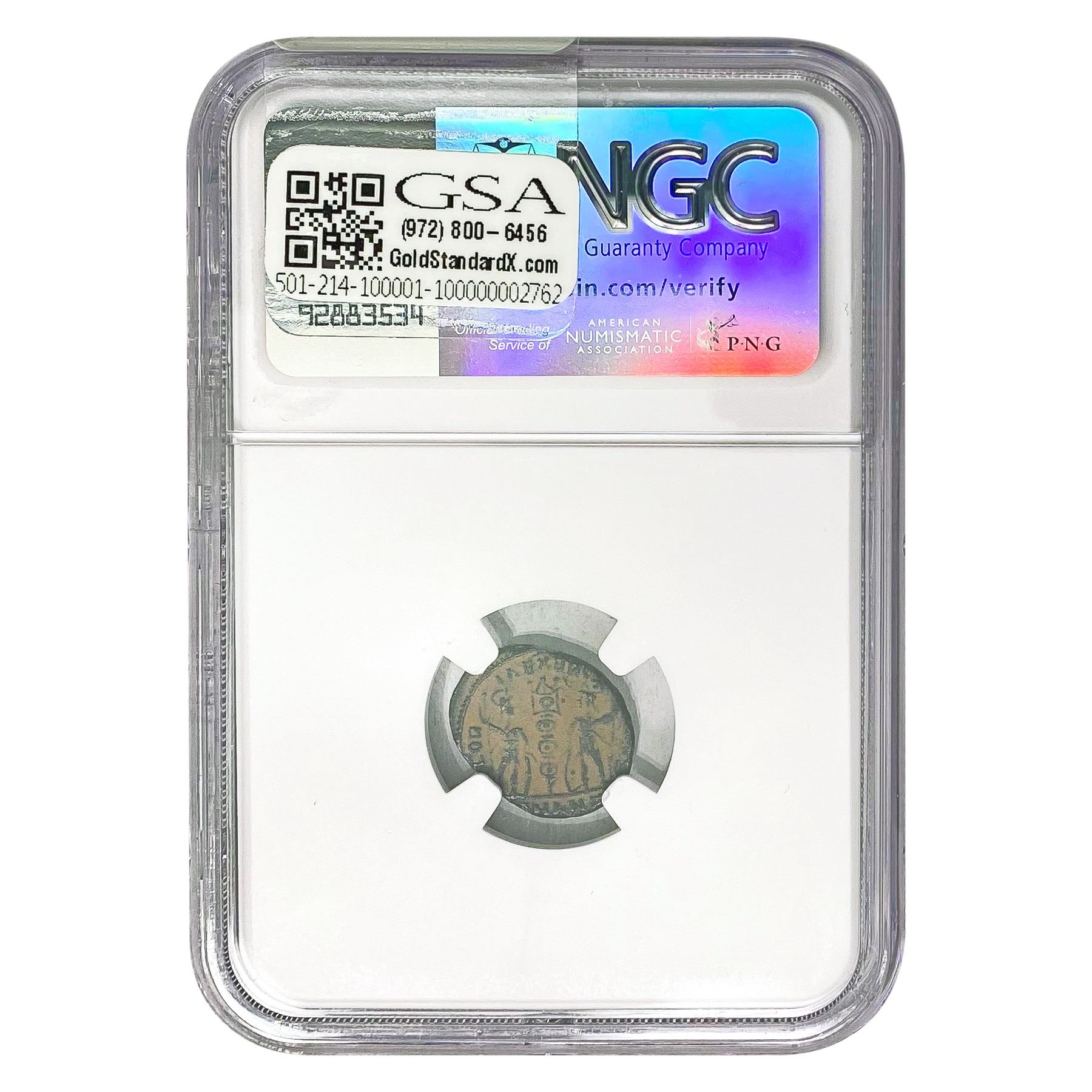 COINS AND CURRENCY LISTED IN GSA’S CATALOG AS GRADED AND ENCAPSULATED BY PCGS, NGC, ANACS, ICG, PCGS CURRENCY, PMG, PCGS BANKNOTE GRADING, CMC OR ANY OTHER THIRD-PARTY GRADING SERVICE ARE LIKEWISE SOLD “AS-IS” EXCEPT AS EXPRESSLY SET FORTH HEREIN. ALL THIRD-PARTY GRADING SERVICE GUARANTEES, INCLUDING AUTHENTICITY, ARE THE SOLE RESPONSIBILITY OF THE THIRD-PARTY GRADING SERVICE AND NOT WARRANTIES OR GUARANTEES OF GSA. BIDDERS SHOULD CONTACT THESE THIRD-PARTY GRADING SERVICES DIRECTLY WITH RESPECT TO ANY CLAIMS OR QUESTIONS THEY MAY HAVE CONCERNING THEIR GUARANTEES AND WARRANTIES. BIDDERS ACKNOWLEDGE AND AGREE THAT AUCTIONEER IS NOT BOUND BY OR LIABLE FOR ANY OPINION OR CERTIFICATION BY ANY THIRD-PARTY GRADING SERVICE. REMOVAL OF A PRODUCT FROM ITS PROTECTIVE CASING OR HOLDER OR ALTERATION OF ANY COIN HOLDER WAIVES ALL RIGHTS CONCERNING THE PRODUCT CONTAINED THEREIN.