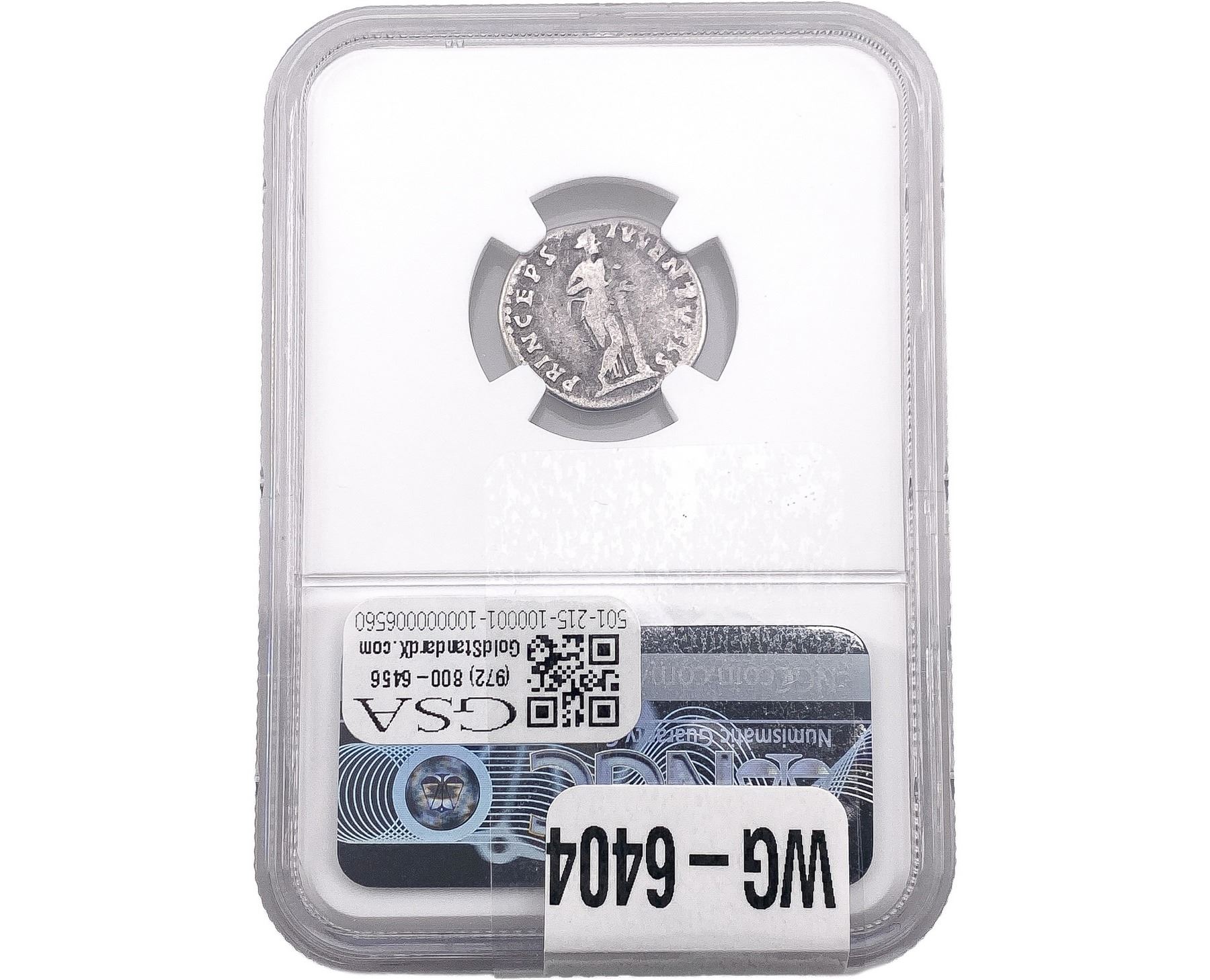 e. Coins sold referencing a third-party grading service are sold “AS IS” without any express or implied warranty, except for a guarantee by GSA that they are genuine. Removal or alteration of the holder, voids all of Bidder’s claims concerning that Product. Certain warranties may be available from the grading services and Bidders are referred to them for further details: Numismatic Guaranty Corporation (NGC), PO Box 4776, Sarasota, FL 34230, www.ngccoin.com/services/writtenguarantee.asp; Professional Coin Grading Services (PCGS), PO Box 9458, Newport Beach, CA 92658, www.pcgs.com/guarantee.html; ANACS, 6555 S. Kenton St., Ste. 303, Englewood, CO 80111; and Independent Coin Grading Co. (ICG), 7901 East Bellview, Ave., Suite 50, Englewood, CO 80111.