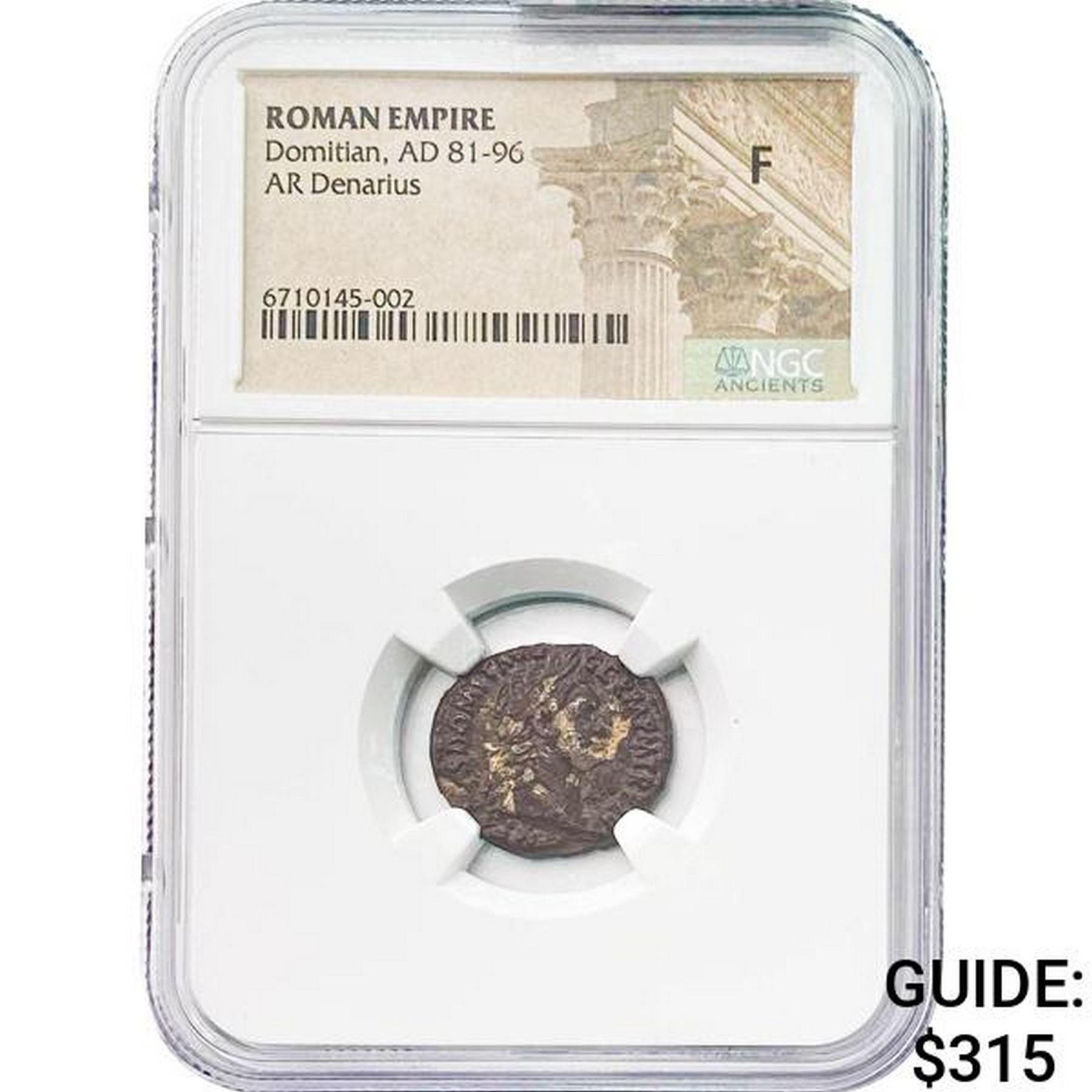 Roman Domitian, AD 81-96 Silver Denarius NGC F