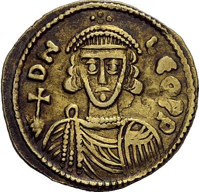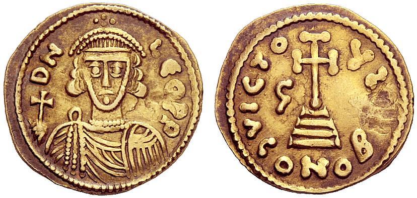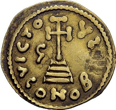 Late Roman Empire. The Lombards. Benevento. First period: dukes of Benevento, 706-774. Gottschalk, 739-742. Solidus in the type of Justinian II and in the name of Leo III, AV 3.92 g. D N – LEO P P Bust facing, wearing diadem with cross on circlet and holding globus cruciger in r. hand. Rev. VICTO – YV Cross potent on globe set on four steps; in l. field, G and in exergue, CONOB. CNI 16-17 var. Sambon Repertorio cf. 393 and note. Oddy –. MEC 1, –. Friedberg –. Extremely rare. Metal flaw on reverse field, otherwise good very fine.