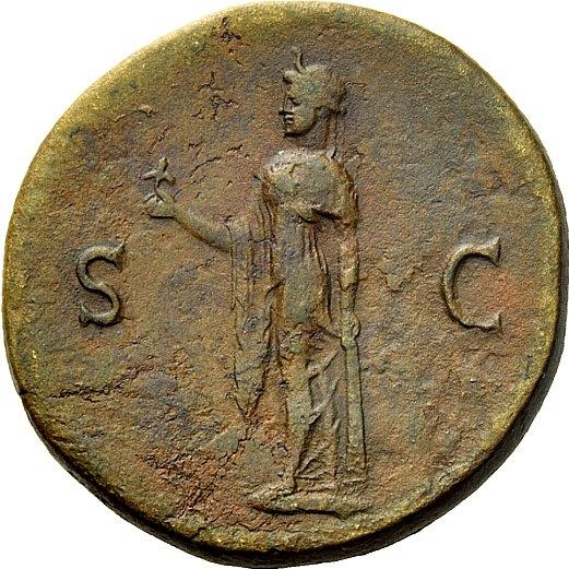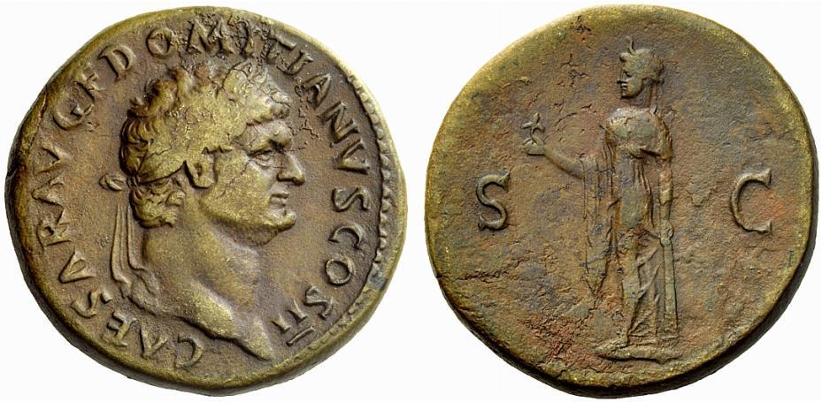 The Roman Empire, Domitian caesar, 69 – 81, Sestertius 73-74, Æ 24.75 g. Laureate head r. Rev. Spes standing l., holding flower and raising skirt. C 444. BMC Vespasian 679. RIC Vespasian 654. CBN Vespasian 692 var. Brown tone and very fine / about very fine