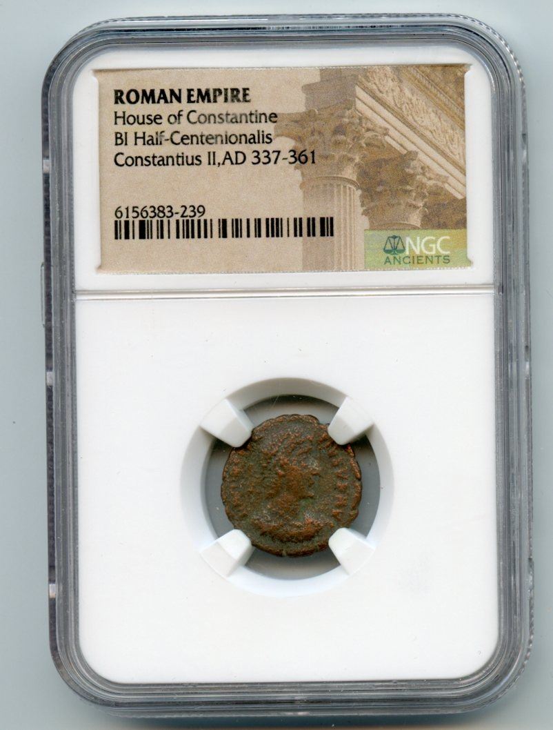 House of Constantine Bi-Half-Centenionalis. Constantius II, AD 337-361. Genuine ancient coin.