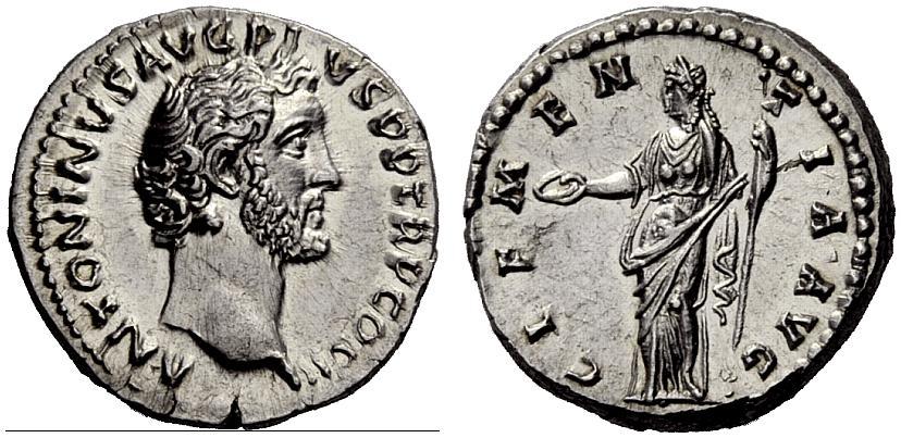 The Roman Empire. Antoninus Pius augustus, 138–161. Denarius 140-143, AR 3.46g. ANTONINVS AVG PI–VS P P TR P COS II Bare head r. Rev. CLEMEN–TIA AVG Clementia standing l., holding patera and sceptre. C –, cf. 123 (COS III). BMC 81. RIC –, cf. 64 (COS III). Virtually as struck and almost Fdc