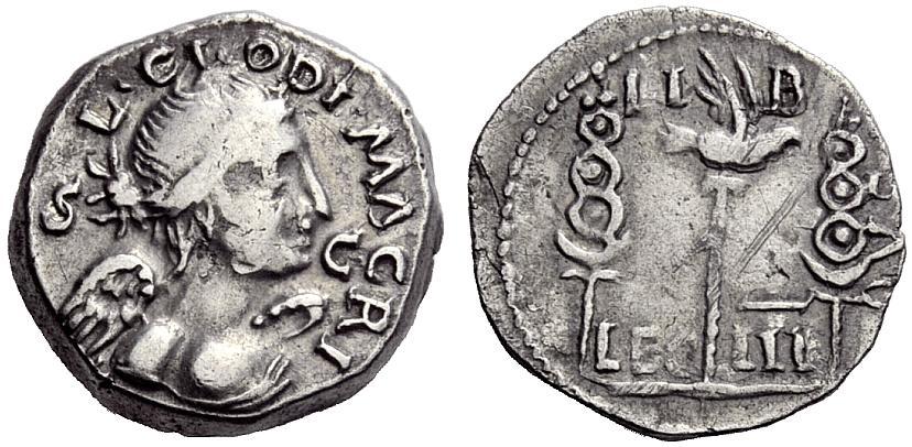 The Roman Empire. Clodius Macer, April–October 68. Denarius, Carthago April-October 68, AR 3.95g. L CLODI MACRI Draped bust of Victory r.; at sides, S–C. Rev. LI–B–AVG Legionary eagle between two vexilla; in field below, above, exergual line LEG III. C 4. BMC 4. RIC 17. CBN 4. Hewitt, NC 1983 pl. 2,28 (this obverse die). Extremely rare. Two light scratches on reverse, otherwise good very fine / very fine. The opening months of the Civil War of A.D. 68-69 produced some of the most interesting Roman coins of the first century, including those by Vindex, Galba and Clodius Macer, who seems to have sparked his revolt in April of 68. It likely began in Numidia, where he commanded the Legio III Augusta (the legion named on this coin), but it soon was headquartered in Carthage, where Macer gained control of the local fleet and could, if necessary, threaten Rome's grain supply. Of all the coinages from the civil war, those of Clodius Macer are the most inventive. It is remarkable that he used the formulaic abbreviation S C (senatus consulto) on his denarii, for this abbreviation otherwise had not appeared on Roman silver coins since about 40 B.C. We may take this and his decision to portray himself without a laurel wreath or a diadem as evidence that he wished to portray his revolt as being against Nero, not the senate. Most coins of his contemporaries trumpet the predictable themes of loyalty, unity, recovery and victory, but Macer’s are restorative, recalling an event of precisely a century before: the battle of Actium in 31 B.C. Indeed, the reverse of this coin is inspired by the legionary denarii of Marc Antony, and the obverse may well copy denarii of Octavian struck immediately after Actium (BMCRR 4341). Macer perhaps believed it was no mere coincidence that Rome’s new revolutionary war was being waged in the centenary year of Actium, the battle that in essence had ended Rome’s previous civil war. Macer's coinage was the subject of a die study by Hewitt published in the 1983 Numismatic Chronicle, in which 77 dies were recorded for the series. Since 49 dies are known only from single coins, Hewitt estimated that the rebel's total coinage may have been produced with more than 180 dies. Thus, we must conclude that despite its low survival rate, Macer's coinage originally was substantial. The reasons for the low survival are probably political rather than monetary, for Hewitt has shown that the weight and purity of Macer's coins are in line with those of his contemporaries, and the surviving specimens are well preserved. The likely explanation is that they were withdrawn from circulation quickly to eliminate lingering evidence of Macer's uprising. These coins must then have been melted, with some or all of that metal being used for denarii subsequently produced at that same North African mint in the name of Galba.