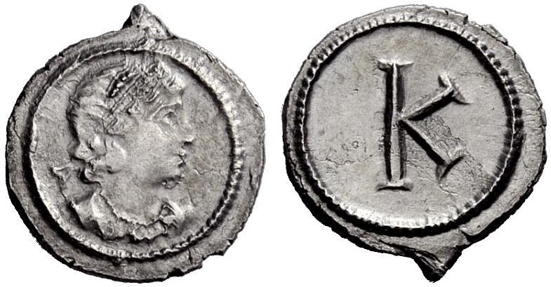 The Roman Empire. Commemorative issue, 330-354. 1/3 siliqua, Constantinopolis 330-354, AR 1.34g. Diademed and draped female bust r. Rev. K. C –, cf. vol. VII p. 401, 287. Mazzini –, cf. V pl. XXXVIII, 287 (Constantine II). Bendall, RN 158, pl. 11, 4. Very rare and in exceptional condition for the issue. Extremely fine