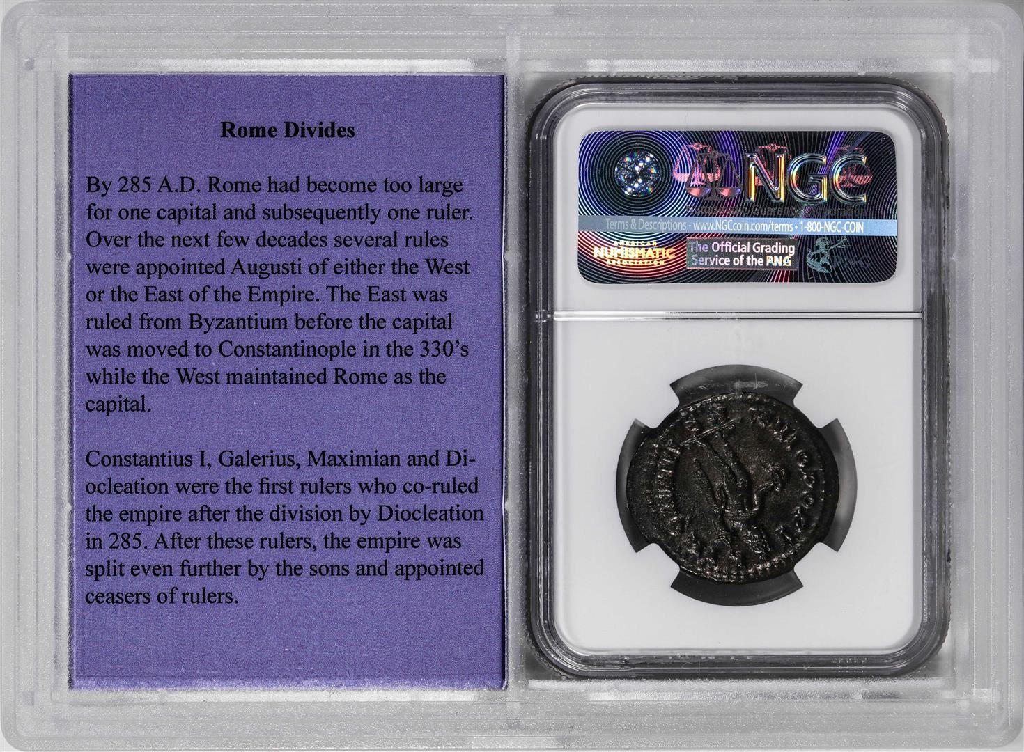 One Roman Empire Constantius I 305-306 AD BI Nummus Ancient Coin NGC Ch AU Story Box. NGC Certified.
