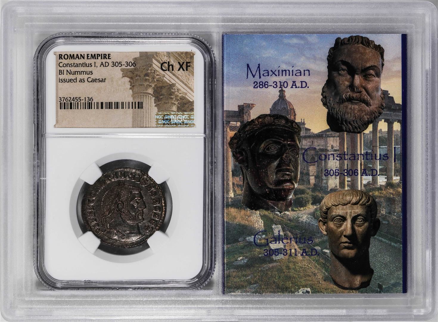 Roman Empire Constantius I 305-306 AD BI Nummus Ancient Coin NGC Ch XF Story Box
