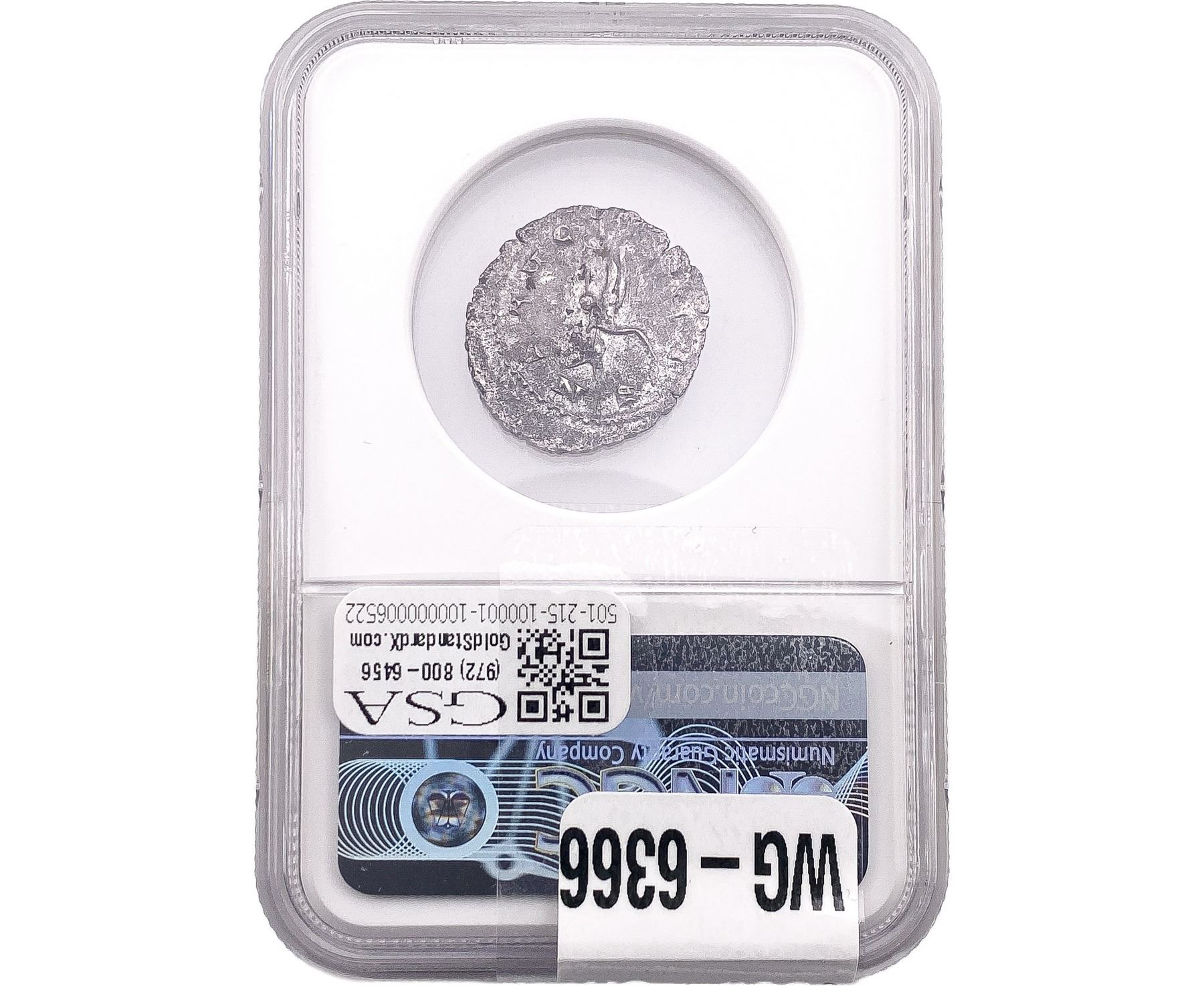 e. Coins sold referencing a third-party grading service are sold “AS IS” without any express or implied warranty, except for a guarantee by GSA that they are genuine. Removal or alteration of the holder, voids all of Bidder’s claims concerning that Product. Certain warranties may be available from the grading services and Bidders are referred to them for further details: Numismatic Guaranty Corporation (NGC), PO Box 4776, Sarasota, FL 34230, www.ngccoin.com/services/writtenguarantee.asp; Professional Coin Grading Services (PCGS), PO Box 9458, Newport Beach, CA 92658, www.pcgs.com/guarantee.html; ANACS, 6555 S. Kenton St., Ste. 303, Englewood, CO 80111; and Independent Coin Grading Co. (ICG), 7901 East Bellview, Ave., Suite 50, Englewood, CO 80111.