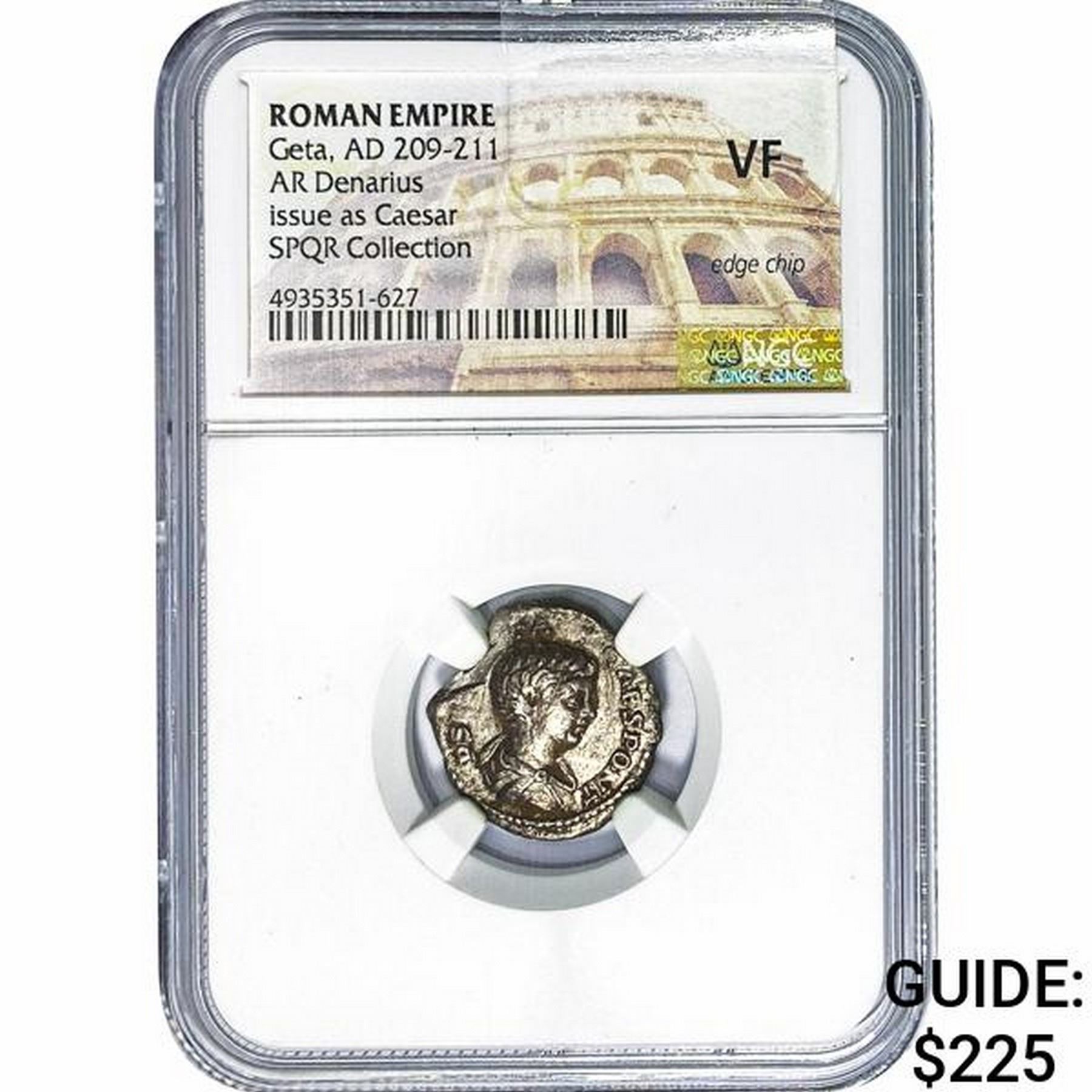 Roman Geta, AD 209-211 Silver Denarius NGC VF