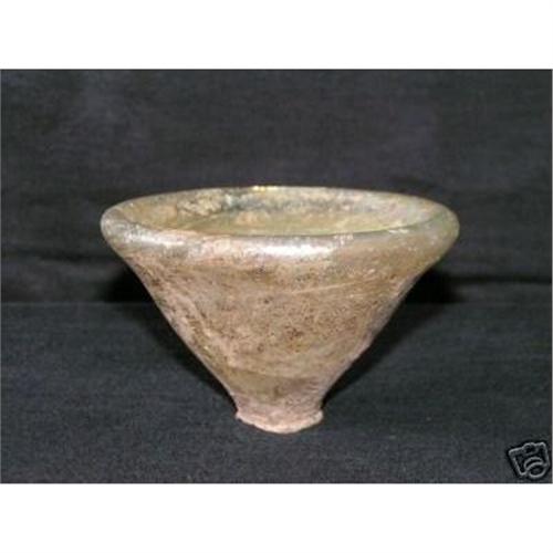 On sale is a very rare "Roman Glass Unguentarium" circa 100A.D. to 300A.D. Featured is a unique glassware container that was used for oils, perfumes or various unguents. Created from a core formed technique this rare conical shaped piece has a very thick concave base. This glass vessel was apparently fired twice and its opening was finished with a lipped rim. It has a slight earthen surface patina permeated with an unusual iridescence to the outer and uncovered under laid area! This Roman glass has a slight chip that only adds beauty and value to this piece.