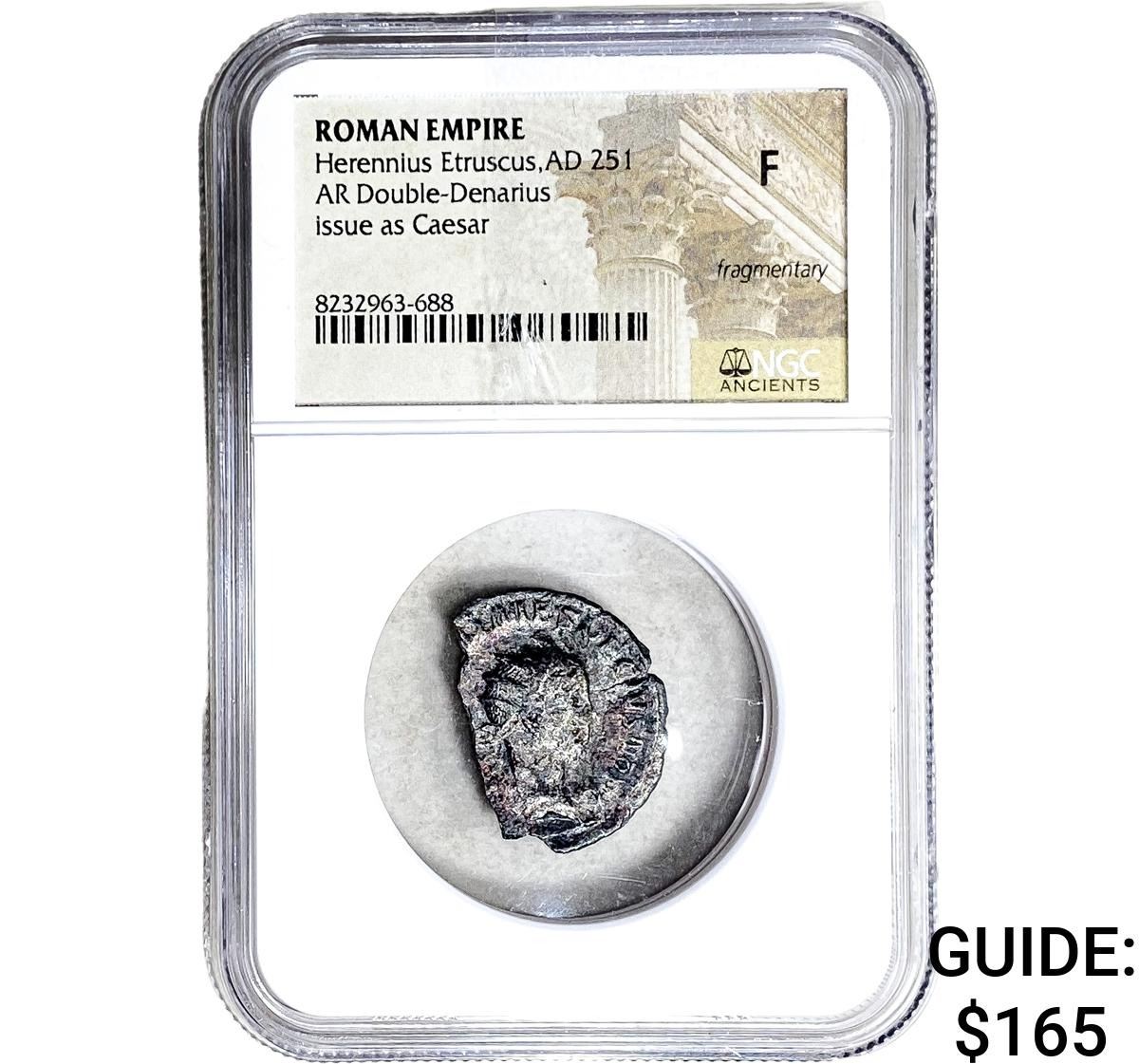 Roman Herennius Etruscus AD251 AR Dbl-Denarius NGC F