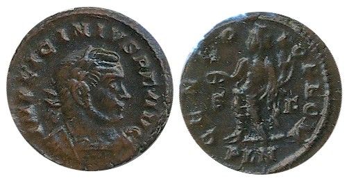 Roman Imperial Coinage; Licinius I Follis. Obv: IMP LICINIVS P F AVG; Rev: GENIO - POP ROM. Genius standing left. London Ric 3 c. 131-14. EF for grade.
