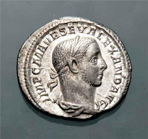 Roman Imperial Coins - Ag - Alessandro Severo (222-245 d.C.) - Denaro databile al 226 d.C. - Zecca: Roma - Diritto: effigie dell'Imperatore a destra - Rovescio: Alessandro Severo stante a sinistra nell'atto di compiere un sacrificio sopra un tripode acceso ai suoi piedi - gr. 3,21 -