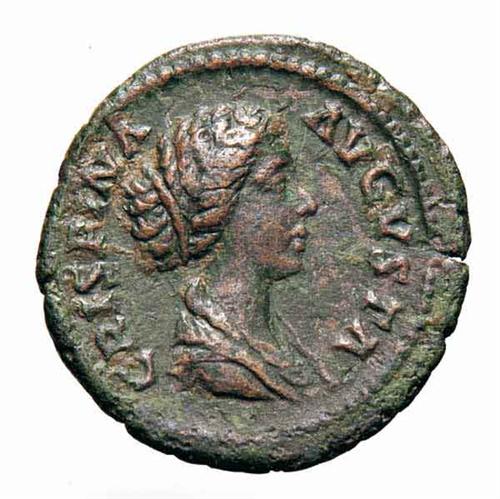 Monete Romane Imperiali - Crispina (moglie di Commodo) - Asse - Metallo: Ae - Zecca: Roma - Diritto: effigie di Crispina a destra - Rovescio: la dea Ceres seduta a sinistra diene due spighe di grano con la mano destra e una lunga torcia accesa con la sinistra - gr. 9,77 - Non comune