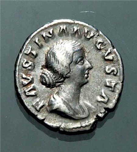 Roman Imperial Coins - Ag - Faustina figlia (moglie di Marco Aurelio) - Denaro databile al primo periodo di regno di Marco Aurelio (161-170 d.C.) - Zecca: Roma - Diritto: effigie di Faustina a destra - Rovescio: trono drappeggiato sul quale giocano il futuro Imperatore Commodo ed il gemello Antonino - gr. 3,39 -