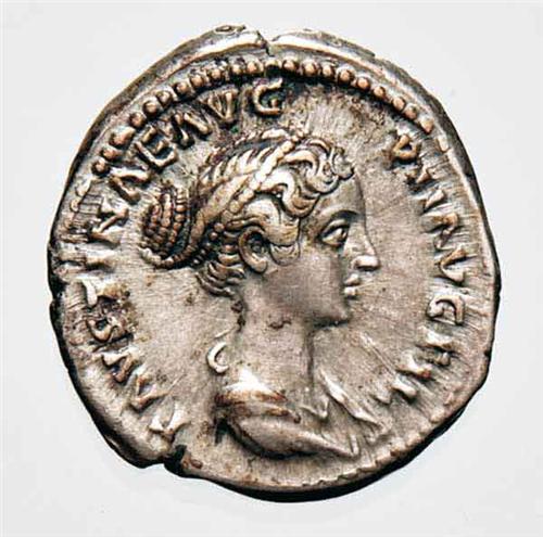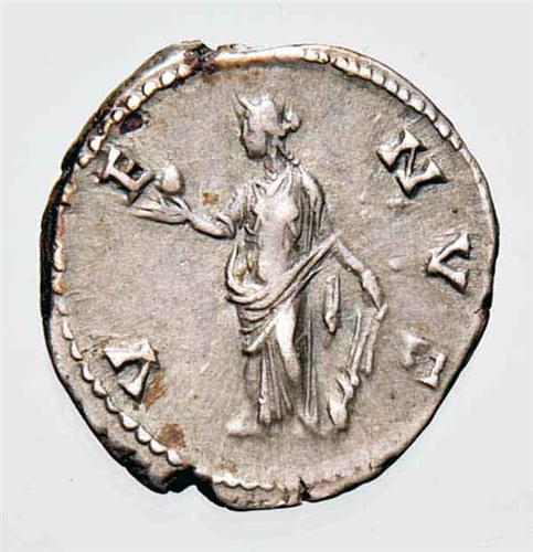 Monete Romane Imperiali - Faustina figlia (moglie di Marco Aurelio) - Denaro coniato durante il regno di Antonino Pio (138-161 d.C.) - Metallo: Ag - Zecca: Roma - Diritto: effigie di Faustina a destra - Rovescio: la dea Venere porge il pomo con la mano destra e tiene un timone di nave con la sinistra - gr. 3,75 -