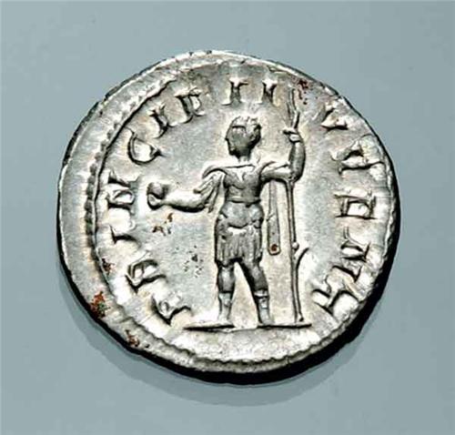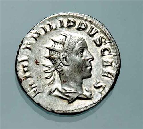 Roman Imperial Coins - Ag - Filippo II (figlio di Filippo I) - Antoniniano con il titolo di Cesare databile al periodo 244-246 d.C. - Zecca: Roma - Diritto: effigie radiata di Filippo II a destra - Rovescio: il Cesare stante a sinistra in abito militare con globo e lancia capovolta - gr. 3,89 -