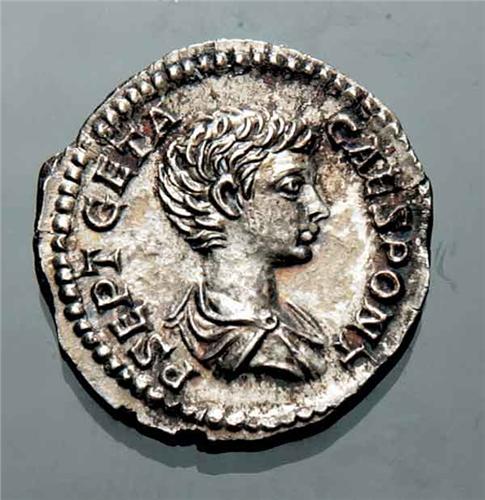 Roman Imperial Coins - Ag - Geta (figlio di Settimio Severo) - Denaro databile al periodo 200-202 d.C. durante il regno di Settimio Severo - Zecca: Roma - Diritto: effigie di Geta a destra - Rovescio: la Nobilitas stante a destra tiene il Palladium e un lungo scettro - gr. 3,22 -