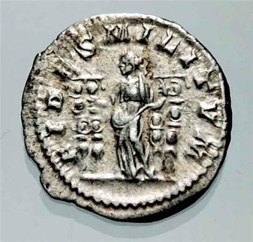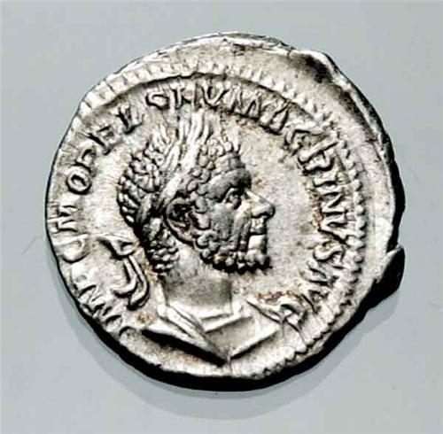 Roman Imperial Coins - Ag - Macrino (217-218 d.C.) - Denaro - Zecca: Roma - Diritto: effigie dell'Imperatore a destra - Rovescio: la Fides stante a sinistra fra due insegne militari - gr. 3,40 - Non comune
