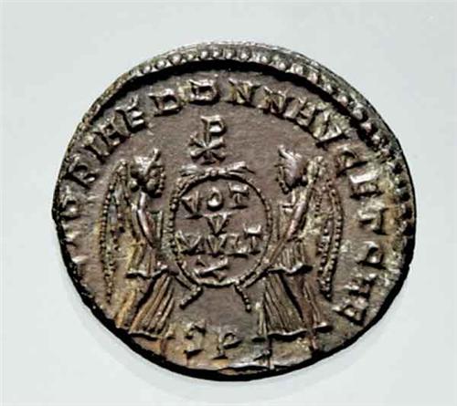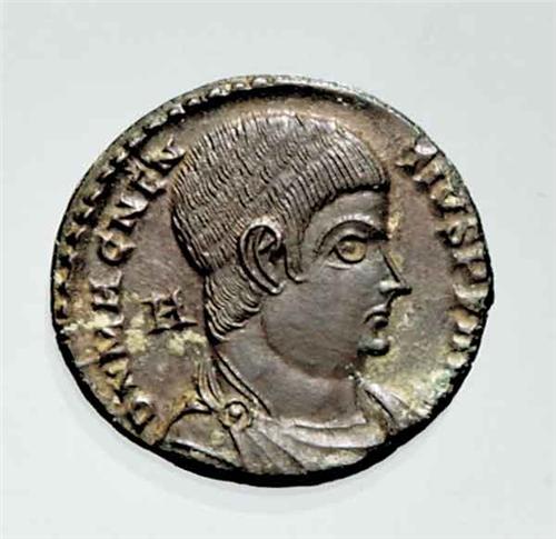 Roman Imperial Coins - Ae - Magnenzio Augusto (350-353 d.C.) - Bronzo di modulo medio - Zecca: Lugdunum - Diritto: effigie dell'Augusto a destra - Rovescio: due Victoriae alate sostengono una corona di alloro sopra la quale campeggia il monograma di Cristo -