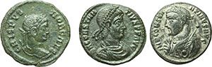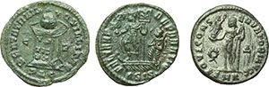 Roman Imperial. Constantine I (307-337). Lot of 3 folles of Constantine I, Crispus and Constantius II. AE. EF. Impero Romano. Costantino I ed i figli Crispo e Costanzo II. Lotto di 3 follis selezionati da classificare. AE. SPL.