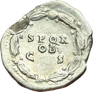 Roman Imperial. Galba (68-69). Denarius. Obv.: IMP SER GALBA AVG. Bare head right. Rev.: SPQR / OB / C S within oak wreath. RIC 167 var. AG. g. 2.25 R. VF. Impero Romano. Galba (68-69). Denario. D/ IMP SER GALBA AVG. Testa nuda a destra. R/ SPQR / OB / C S entro corona di quercia. RIC 167 var. AG. g. 2.25 R. BB.