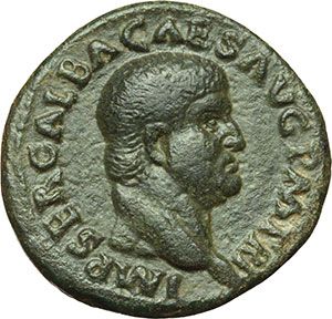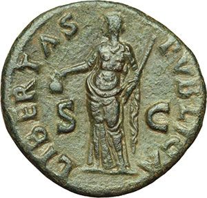 Roman Imperial. Galba (68-69). Dupondius. Obv.: IMP SER GALBA CAES AVG PM TR P. Bare head right. Rev.: LIBERTAS PVBLICA SC. Libertas standing facing, head left, holding pileus and sceptre. RIC 366. AE. g. 11.09 mm. 27.00 R. Few light cleaning marks, otherwise Good VF+. Impero Romano. Galba (68-69). Dupondio. D/ IMP SER GALBA CAES AVG PM TR P. Testa nuda a destra. R/ LIBERTAS PVBLICA SC. Libertas, stante di fronte con il capo a sinistra, tiene pileo e scettro. RIC 366. AE. g. 11.09 mm. 27.00 R. Minime tracce di abile pulitura, altrimenti bel BB+.