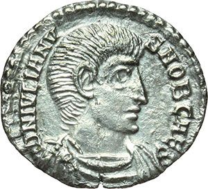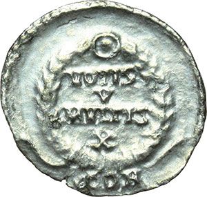 Roman Imperial. Julian II as Caesar (355-360). Siliqua, Arelate. Obv.: DN IVLIANVS NOB CAES. Bareheaded, draped and cuirassed bust right. Rev.: VOTIS/V/MVLTIS/X within wreath. CON below. RIC 260 (R2). AG. g. 1.69 mm. 18.00 RR. EF/About EF. Rare. A very attractive coin. Impero Romano. Giuliano II l'Apostata Cesare (355-360). Siliqua, Arelate. D/ DN IVLIANVS NOB CAES. Busto a testa nuda drappeggiato e corazzato a destra. R/ VOTIS/V/MVLTIS/X entro corona. Sotto, CON. RIC 260 (R2). AG. g. 1.69 mm. 18.00 RR. SPL/qSPL. Raro e molto attraente.