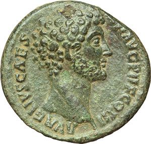 Roman Imperial. Marcus Aurelius as Caesar (139-161). As, 147-148. Obv.: AVRELIVS CAESAR AVG PII F COS II. Bare head right. Rev.: IV/VEN/TVS/SC within oak wreath. RIC (Ant. Pio) 1262. AE. g. 11.23 mm. 27.00 R. A very attractive coin. About EF/EF. Impero Romano. Marco Aurelio Cesare (139-161). Asse, 147-148. D/ AVRELIVS CAESAR AVG PII F COS II. Testa nuda a destra. R/ IV/VEN/TVS/SC entro corona di quercia. RIC (Ant. Pio) 1262. AE. g. 11.23 mm. 27.00 R. Un esemplare molto attraente. qSPL/SPL.